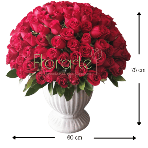 Envía flores que reflejan su amor, belleza y admiración por esa persona especial. Grandioso arreglo elaborado con 14 docenas de Rosas de invernadero rojas posadas en nuestra elegante base de cerámica tipo copa.