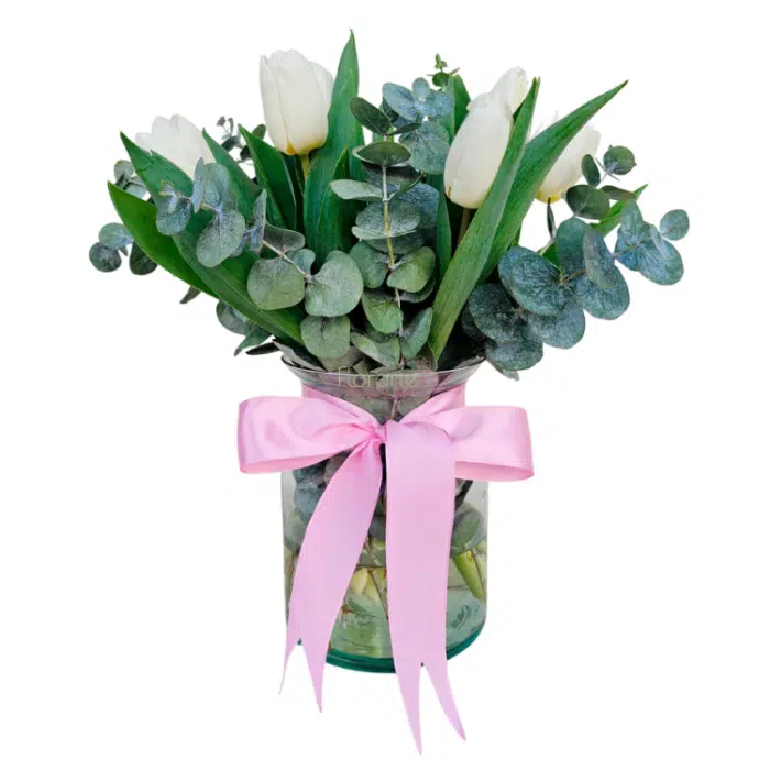 En San Valentín regala flores a domicilio e imagina su cara de sorpresa al recibir diez Tulipanes blancos, acompañados por un toque de follaje de Dolar en nuestro Florero “Pequeño Tibor”. Sorprende a esa persona especial: ¡Ordena el tuyo y nosotros nos encargamos de la magia!