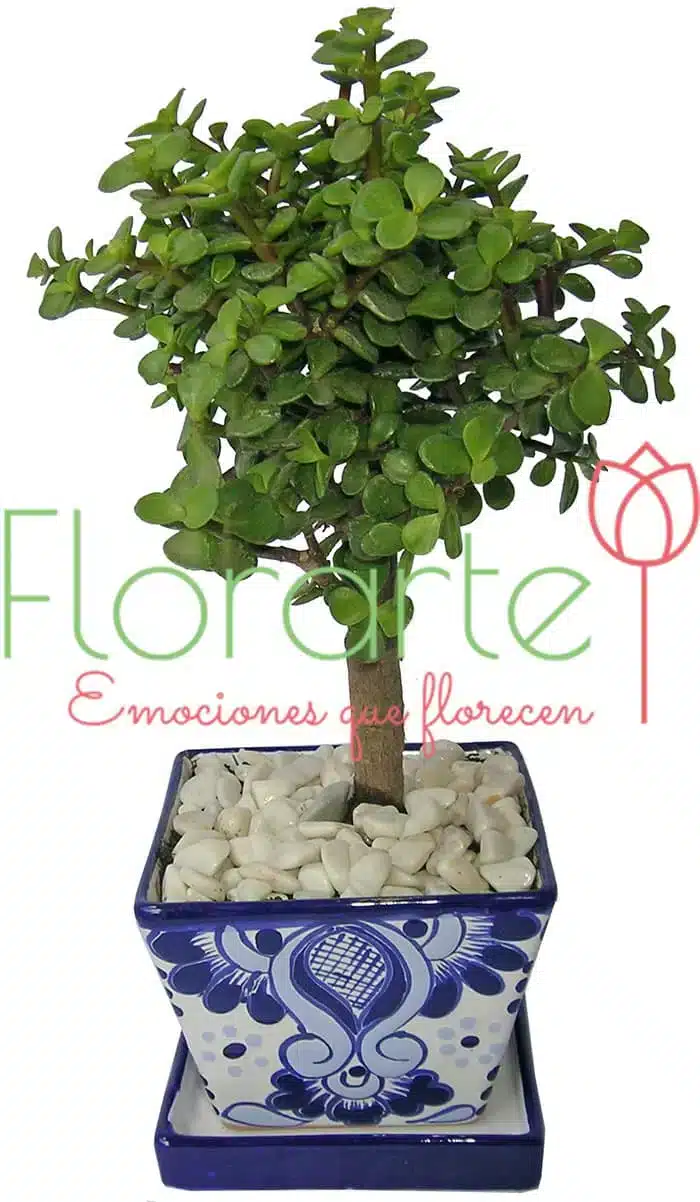Regala este árbol de la abundancia colocado en una maceta de Talavera, es la mejor manera para enviar tu buena vibra a esa persona querida que tienen un nuevo inicio, en la vida, en el trabajo, en el amor. Debe colocarse cerca de la ventana y regarse una vez a la semana, también te recomendamos hablarle con cariños.