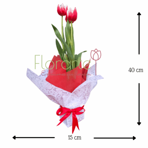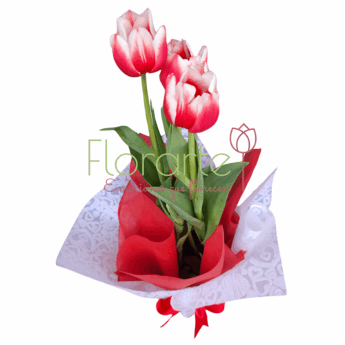 ¡Regala un pedacito de tu corazón! Sorprende a esa persona especial con esta delicada Planta de Tulipanes, un regalo que hablará por ti. Tres tulipanes de vivos colores, envueltos en un elegante papel coreano y adornados con un moño rojo, son la expresión perfecta de tu amor y pasión. ¡No dejes pasar esta oportunidad de hacerle sentir especial! ¡Envía flores y enamora!