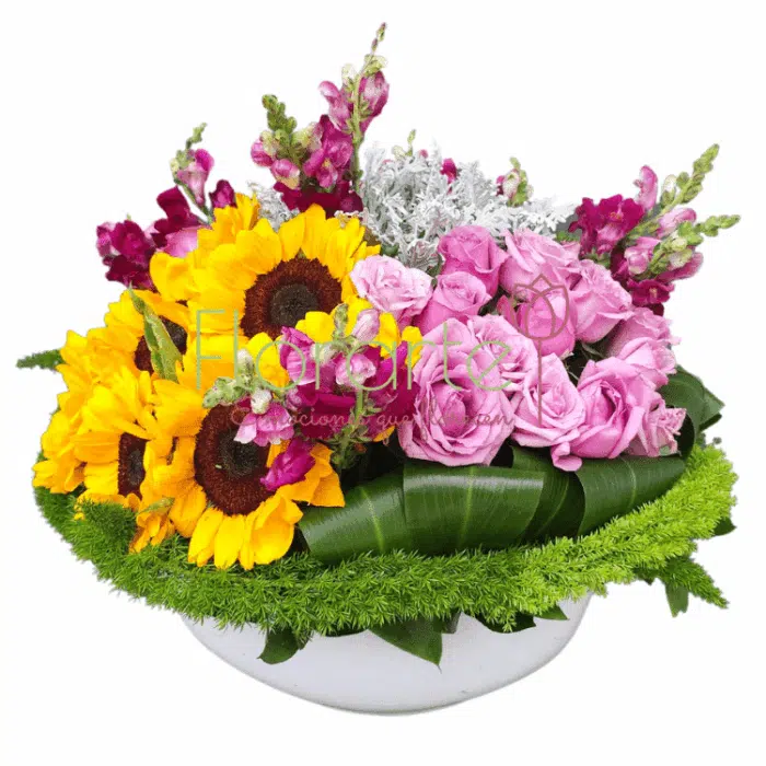 - *Por disponibilidad, puede llegar a cambiar el color de la base y/o algún otro elemento que compone este arreglo, respetando siempre la calidad de sus elementos.