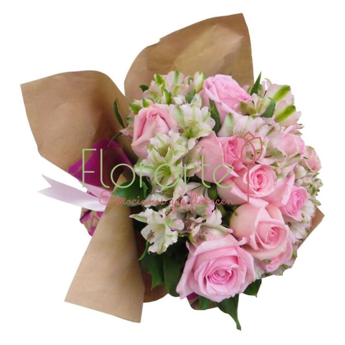 Envía rosas que enternecen el alma. Un ramo de flores que alude a esa parte tierna que toda alma tiene, una docena de rosas caricia, una decena de tallos de alstromelias premium rosa pálido.