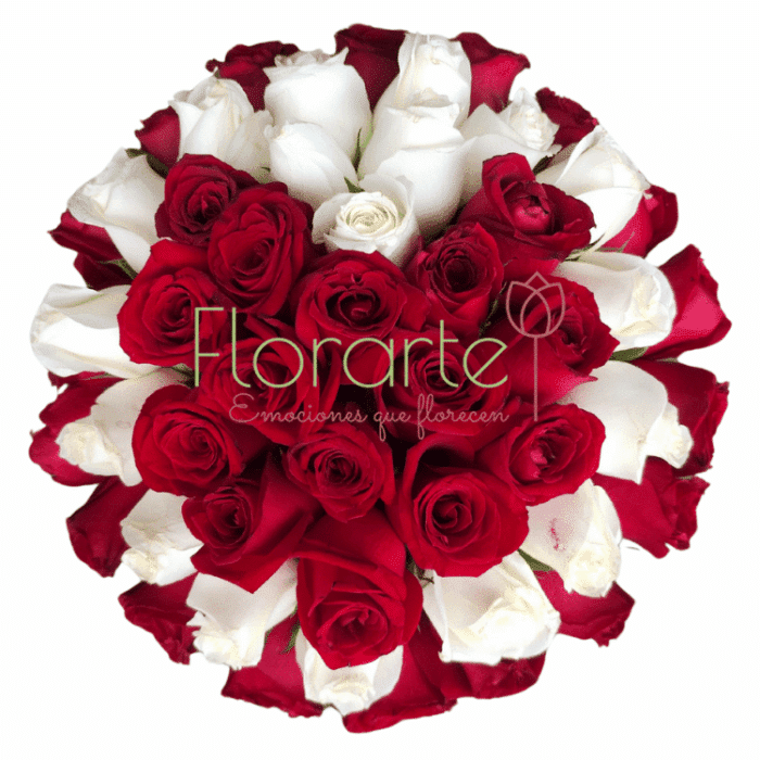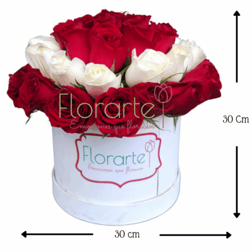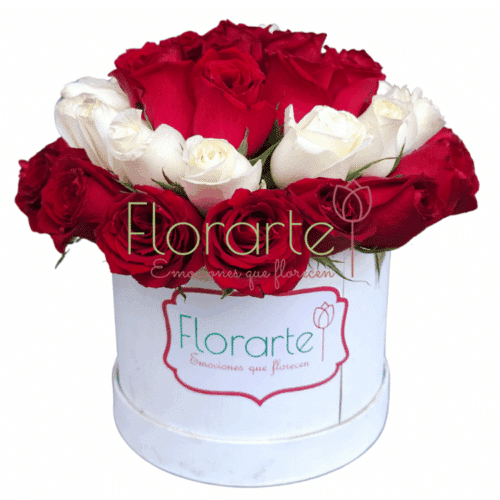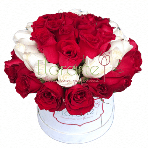 Un susurro de pétalos que viaja directo al corazón. Regala la belleza de las rosas y exprésate sin palabras. Envía flores llenas de amor con esta caja de flores elaborada con 36 Rosas Rojas y 18 Rosas Blancas de invernadero en nuestra caja cilindrica de mdf.