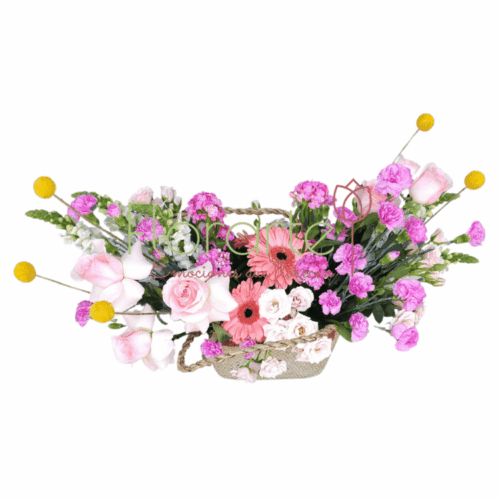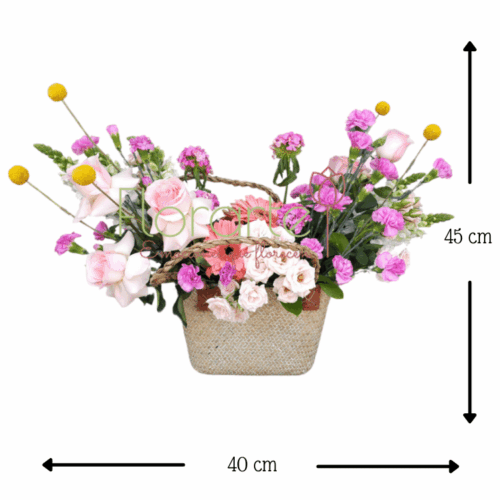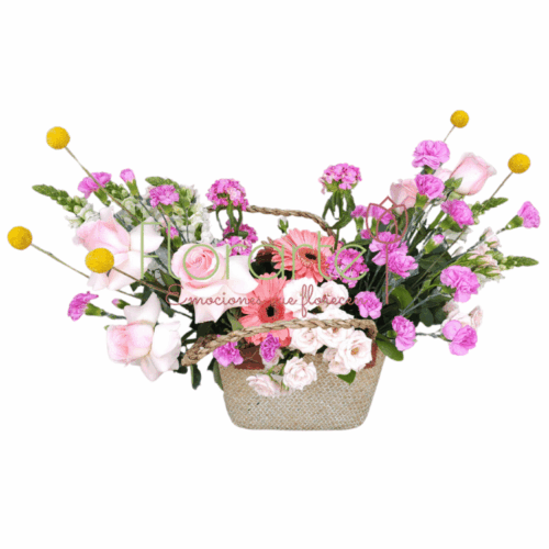 ¡Mamá merece lo más bello! Envía flores a domicilio y regálale un torrente de amor en cada delicado pétalo. Regala flores hermosas con este bello arreglo de Flores elaborado con 6 Rosas de Invernadero rosas, 3 Gerberas rosas, 6 Dragonarias blancas, Clavel fiusha, Rosas baby rosa, Brianthus rosa y 6 Claspedias en nuestra bonita y elegante bolsa tejida.