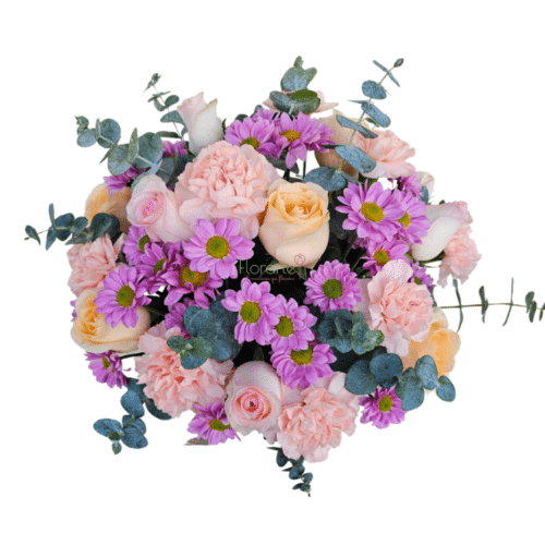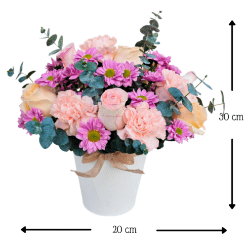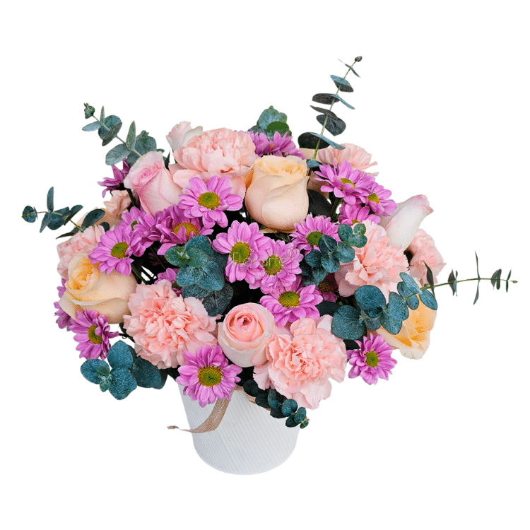 Regala flores a domicilio, listas para conquistar su corazón. Doce Rosas de invernadero en tono rosa y durazno, Margaritas rosas acompañadas de Clavel durazno y un toque de follaje de Dólar en nuestra “Cubeta Consentida”. Agenda tu envío para el 14 de febrero hoy mismo.